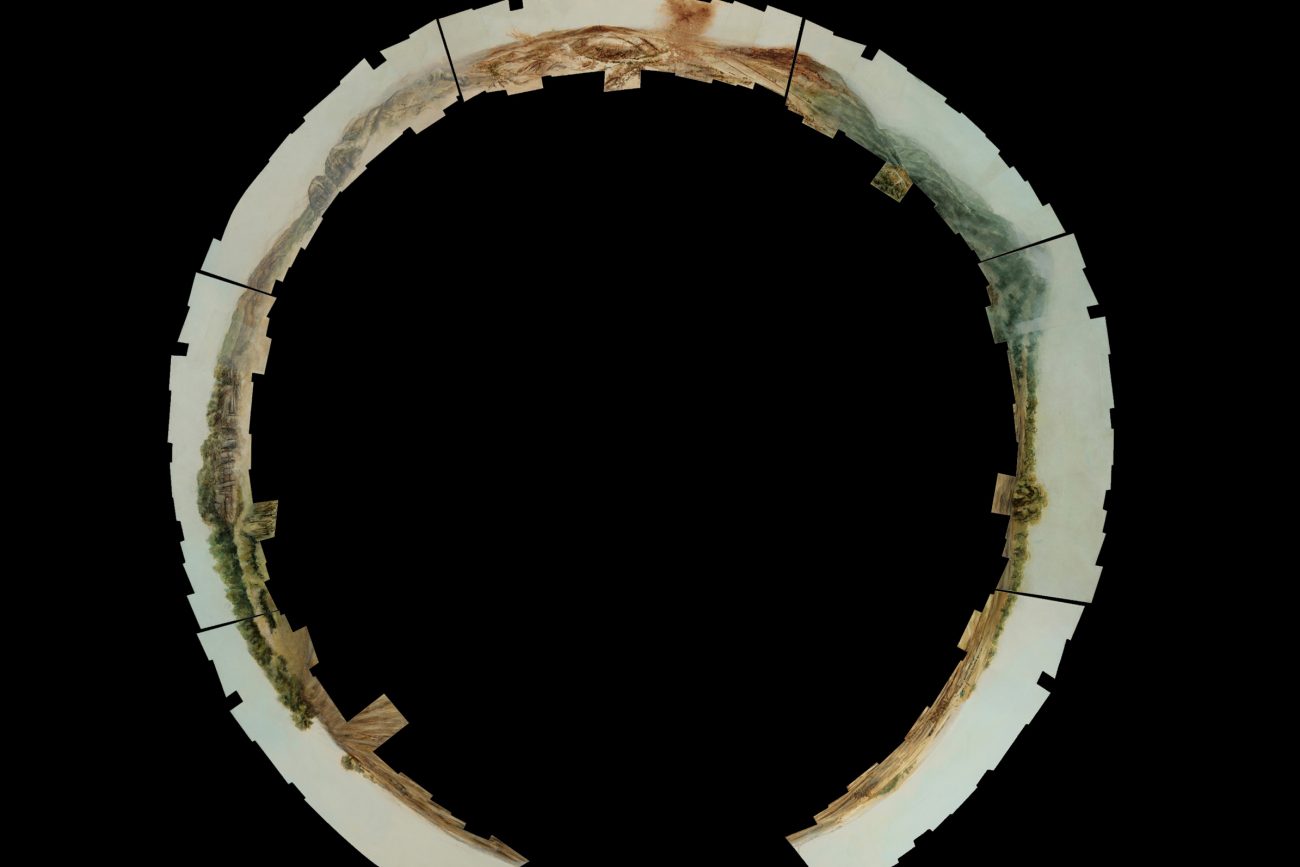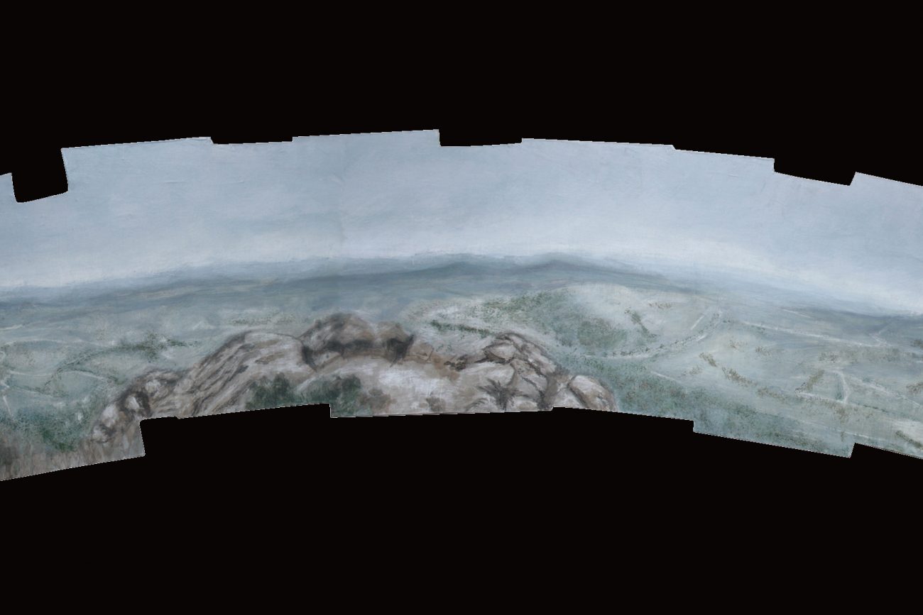 VISTA DESDE LA PEÑA DE BERNAL VII - Viento y tierra en dispersión. Oil / canvas / wood. 60 x 244 cm. 2007