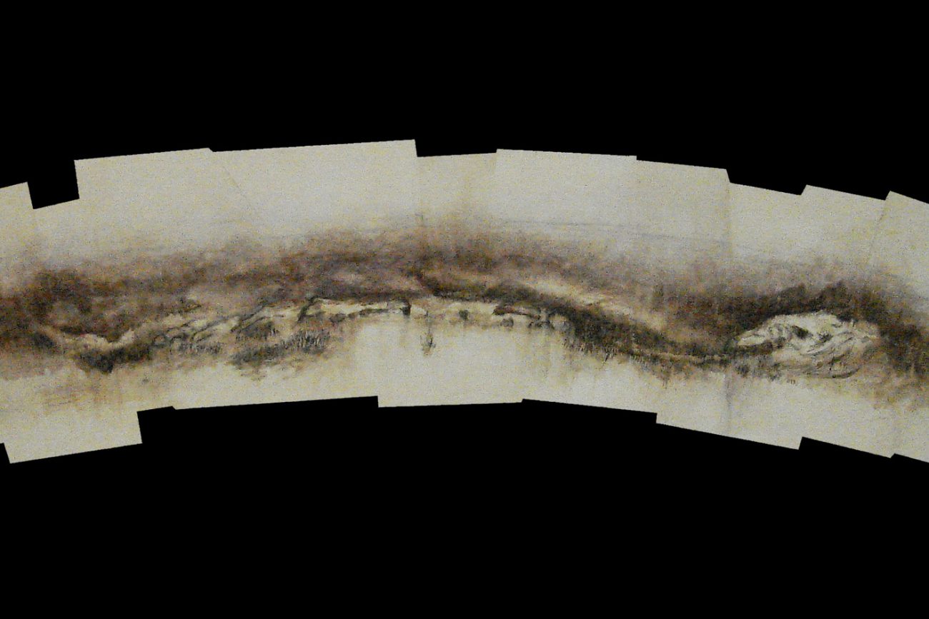 VISTA DESDE LA PEÑA DE BERNAL IX - Tierra flotando. Acrilic, walnut ink, charcoal, sanguine, japanese paper / wood. 2008