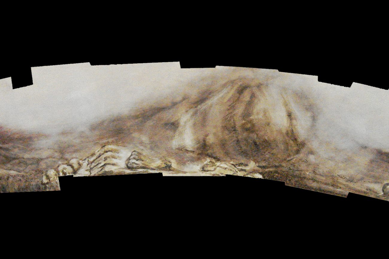 ASÍ EN LA TIERRA COMO EN EL CIELO. Oil, acrilic, walnut ink, charcoal, sanguine / wood. 330 x 315 cm. 2008